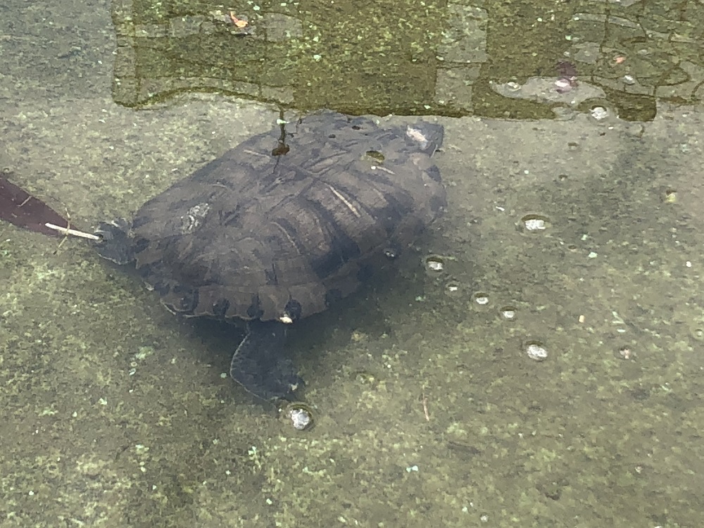公園の池の中にカメが・・・