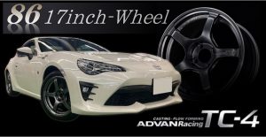 86にADVANRacing TC-4/17インチ取付 【SA246江田 取付事例 】 今回は86に ADVAN Racing TC-4:1775 +50 5H100 DUNLOP LM5 :215/45R17 の組み合わせ。 純正車高...