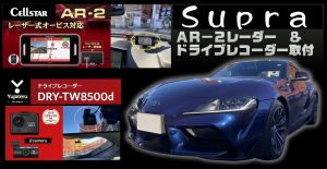 90スープラにドライブレコーダー&レーダー取付 【港北インター店 取付事例】 5~10ついに来ました現行スープラ! かっこいいですね!!! 今回はユピテルのDRY-TW8500d前後ドライブレコーダーと、 レーザー波対応のセルス...