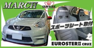 K13マーチNISMOにBRIDE ユーロスターⅡ取付! 【SA十日市場 取付事例】 全国45万人?のマーチファンの皆さんこんにちは‼ 今回はこちらの車両↓↓ 盛況だったBRIDEイベントの時に決めてもらったシート2脚の取付! 運転席:B...