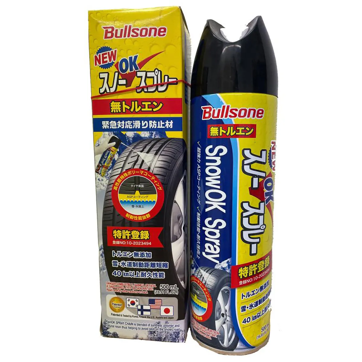 Bullsone スノーOKスプレーは急な降雪時に備えるスプレー式の手軽なタイヤチェーンです。