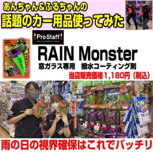 雨の日の視界確保はRAIN Monsterにお任せ あんちゃん&ふるちゃんの 「話題のカー用品使ってみた」Vol.2 雨の日の運転に自信を持てないと言う方必見! 話題の商品「プロスタッフ モンスターシリーズ」...