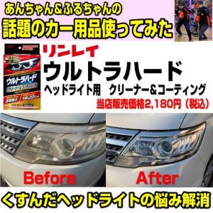 ヘッドライトの黄ばみの悩み一発で解消! あんちゃん&ふるちゃんの 「話題のカー用品使ってみた」Vol.1 ヘッドライトの黄ばみにお悩みの方必見! 話題の商品「リンレイ ウルトラハードシリーズ」ヘッドライト用クリーナ...