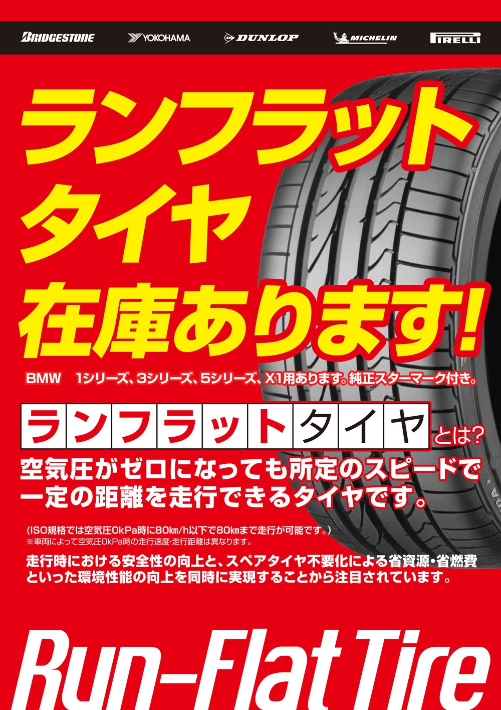 オートバックス海老名店ではランフラットタイヤの在庫をはじめました!