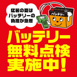 夏はバッテリートラブルに注意!バッテリー無料点検実施中!! クルマの夏場のバッテリー上がりに要注意! 本格的な夏が到来しました🔥おクルマでのお出かけを計画している方も多いのでは無いでしょうか? ロードサービスの出動理由の1位がバッテリー上が...