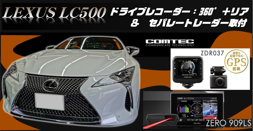 レクサスLC500 360°+リアカメラ ドライブレコーダー&セパレートレーダー取付